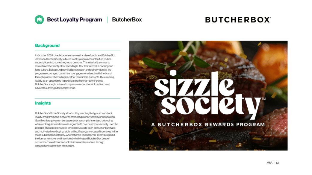 ButcherBox secured the award for Best Loyalty Program for launching Sizzle Society, a tiered system that turns routine subscribers into engaged members through culinary-focused rewards and gamified progression.