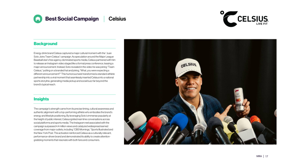 An after party at Hotel Chelsea extended the momentum. The campaign delivered more than 850 million in reach, generated significant media value, attracted high-profile cultural partners and drove measurable lifts in brand health, loyalty recruitment, search and sales across New York City.